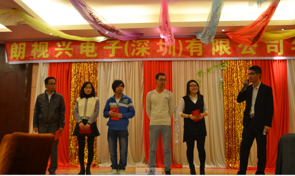 2015年2月10日,主题为“羊帆起航、共筑梦想”的朗视兴2015年终员工表彰大会及迎新春晚会在长丰花园酒店隆重举办。总经理陈先生以及各供应商公司领导与朗视兴全体员工出席了此次年会。本次年会分为上下半场,年会上半场为员工表彰大会,年会下半场为迎新联欢晚会。