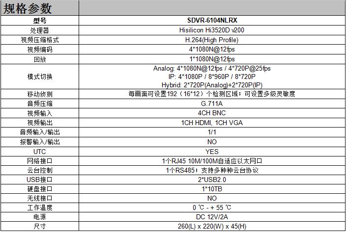 • 产品型号:SDVR-6104NLRX