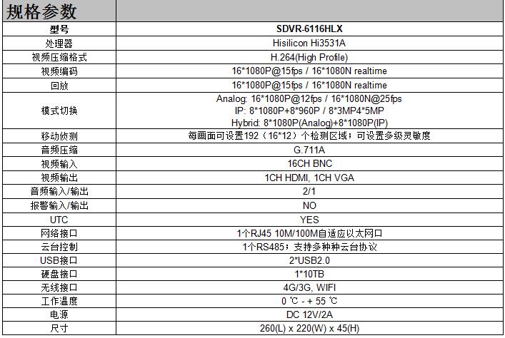 • 产品型号:SDVR-6116HLX