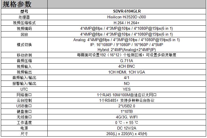 • 产品型号:SDVR-6104GLR
