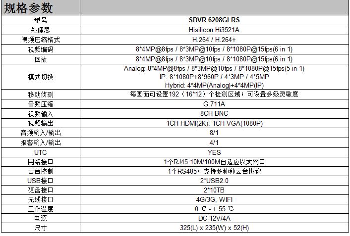 • 产品型号:SDVR-6208GLRS