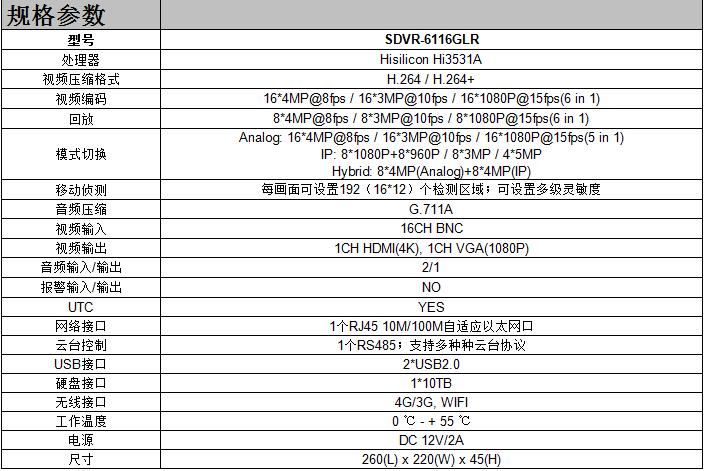 • 产品型号:SDVR-6116GLR
