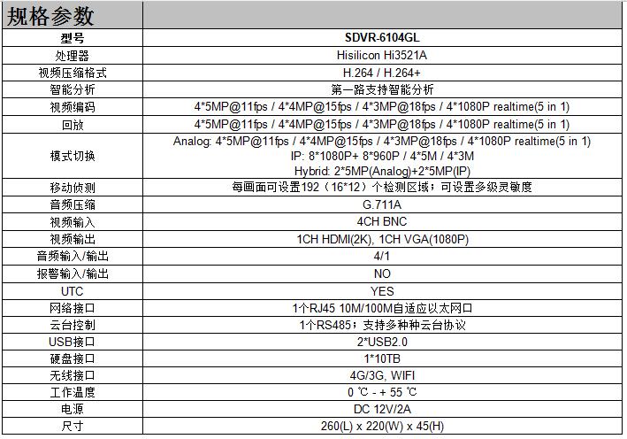 • 产品型号:SDVR-6104GL
