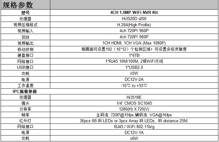 • 产品型号:4CH 1.0MP WiFi NVR Kit