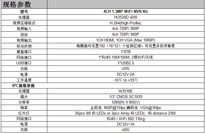 • 产品型号:4CH 1.3MP WiFi NVR Kit