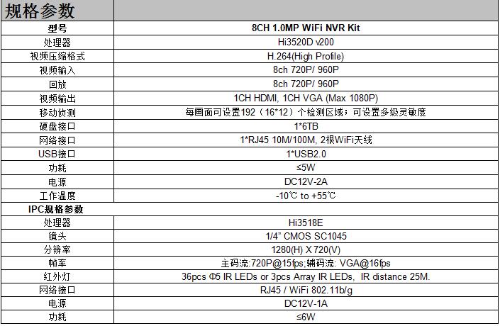 • 产品型号:8CH 1.0MP WiFi NVR Kit