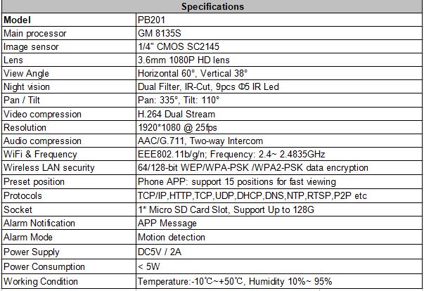 • Name:Wi-Fi Pan&Tlit Camera