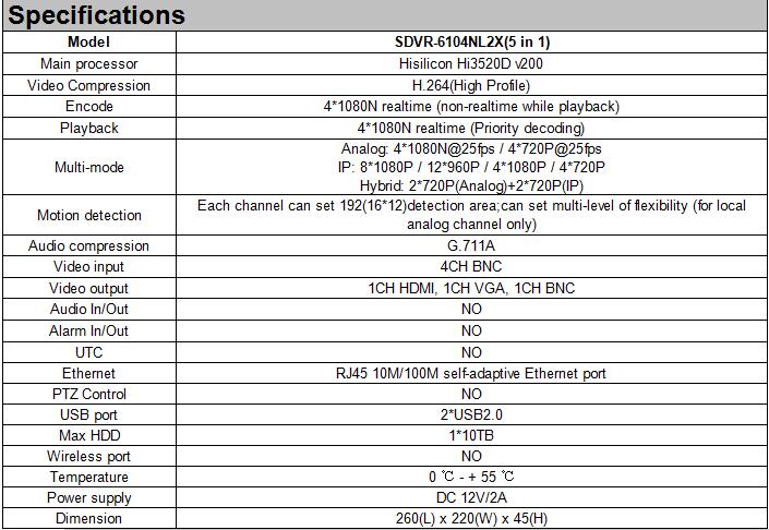 • Model:SDVR-6104NL2X(5 in 1)