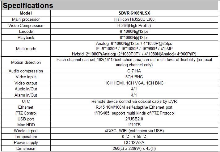 • Model:SDVR-6108NLSX