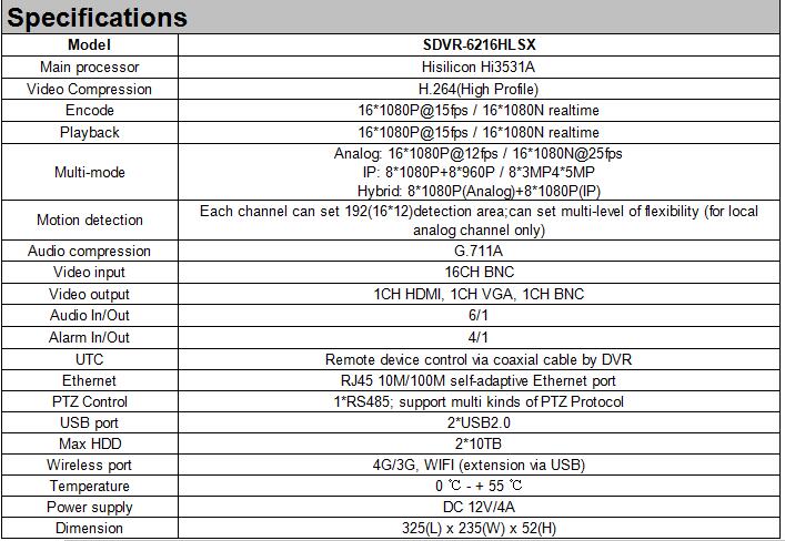 • Model:SDVR-6216HLSX