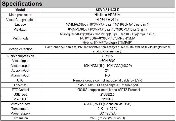 Support 16CH 4MP/3MP/1080P unreal-time; 1080N/720P real-time;